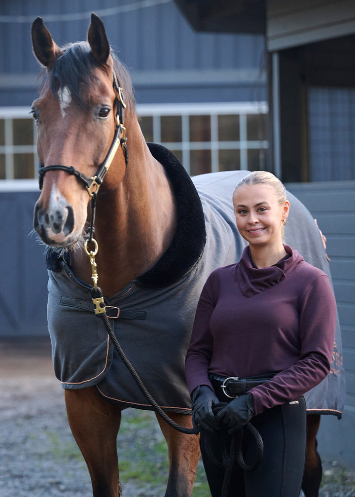 Softly gathered wrap neck and long sleeves for ultimate coziness
